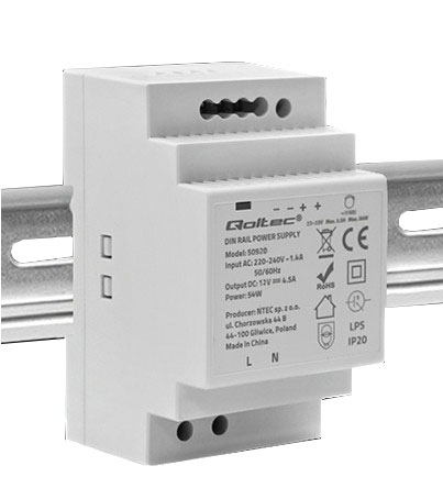 ZASILACZ PRZYSTOSOWANY DO MONTAŻU NA SZYNIE DC 12V/ 4,5A