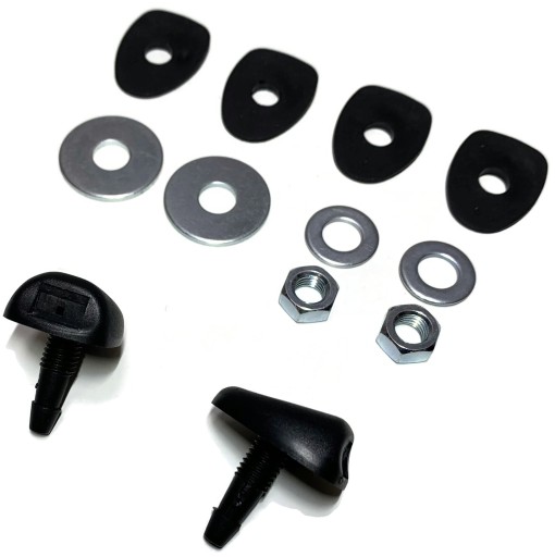 Zawartość zestawu: 2x dysza, 2x nakrętka, 4x podkładka, 4x gumka regulacji kąta nachylenia