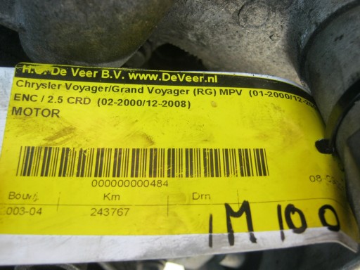 Двигатель Chrysler Voyager 2.5 CRD 01-05 VM20C