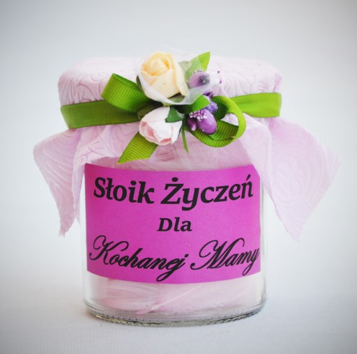 Uroczy słoik mieści 100 życzeń dla Mamy, np: