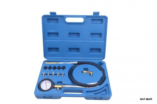 Zawartość zestawu: Manometr o zakresie 0-10BAR z przewodem elastycznym L=1200mm 10szt. adapterów pomiarowych
