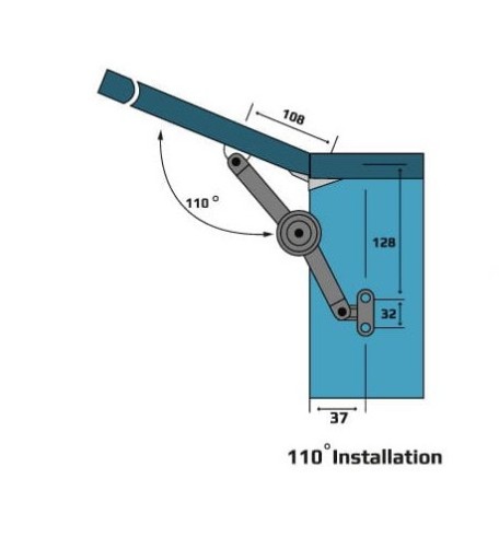 WYMIARY MONTAŻOWE ABY UZYSKAĆ KĄT OTWARCIA FRONTU MEBLOWEGO 110 STOPNI.
