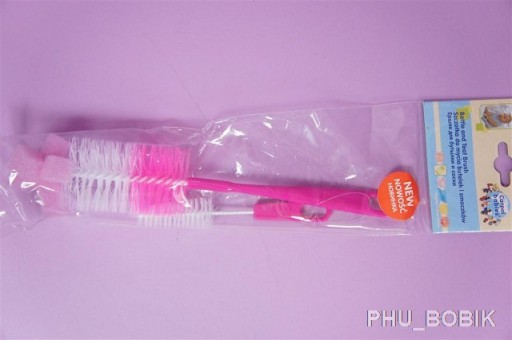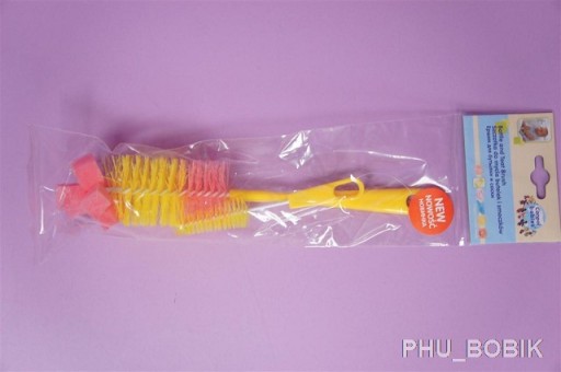 Służy do dokładnego mycia butelek i smoczków przed ich dezynfekcją termiczną. Szczotka umożliwia precyzyjne usuwanie zabrudzeń, a umieszczona na jej końcówce gąbka czyści bezpiecznie nie rysując powierzchni. W zestawie również mała szczotka do czyszczenia smoczków.