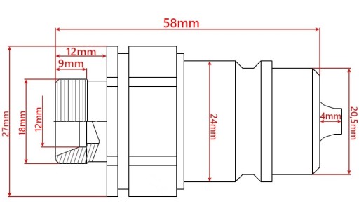 SZYBKOZŁĄCZE HYDRAULICZNE DŁUGIE GNIAZDO EURO GWINT 18x1.5