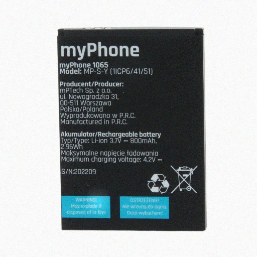 Аккумулятор MP-S-Y 800 мАч myPhone 1062 1065 ОРИГИНАЛ