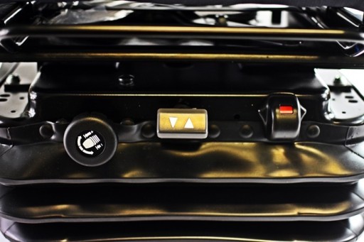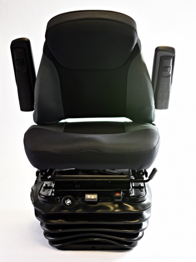 Fotel na zawieszeniu pneumatycznym z mechanizmem obracania siedziska przeznaczony do montażu w koparko-ładowarkach marki JCB