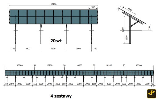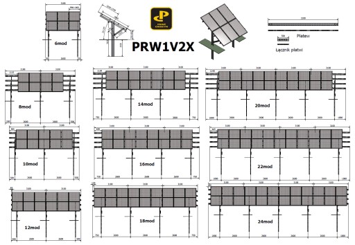 PRW1V2x3+ - konstrukcja dla klienta detalicznego, w której mamy możliwość regulacji odległości najniższego modułu do gruntu aż do 2 metrów !