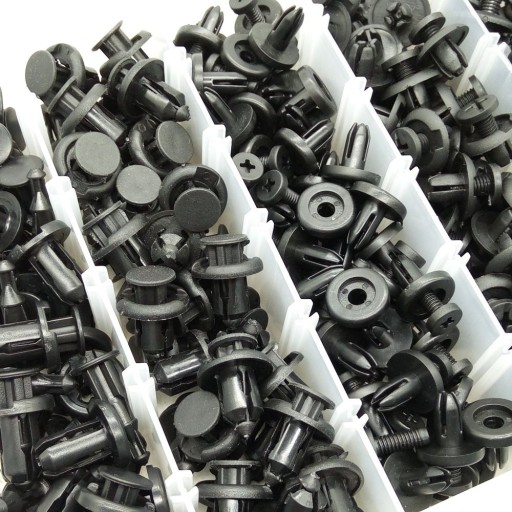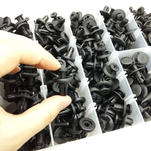 Zestaw spinek, kołków,montażowych, 295 sztuk, uniwersalnych od 6 do 10 mm w praktycznym pudełku. Pasują m.in. do: