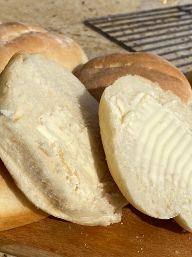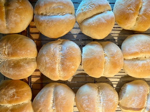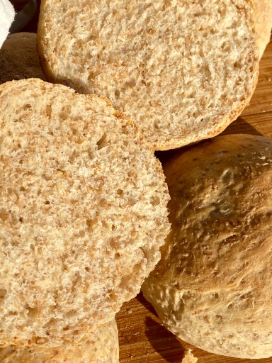 Powyżej bułki grahamki upieczone z naszej mąki graham oraz mąki pszennej typ 500