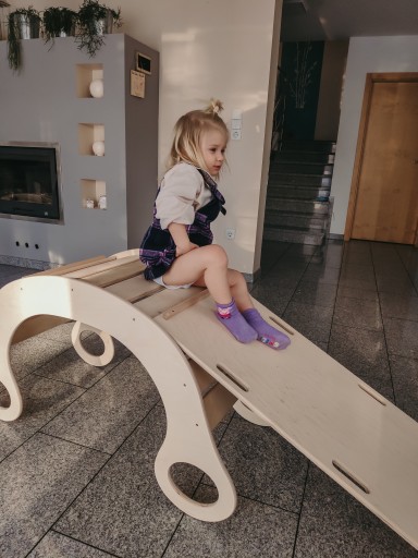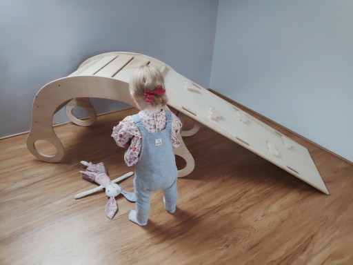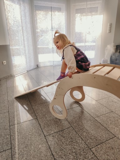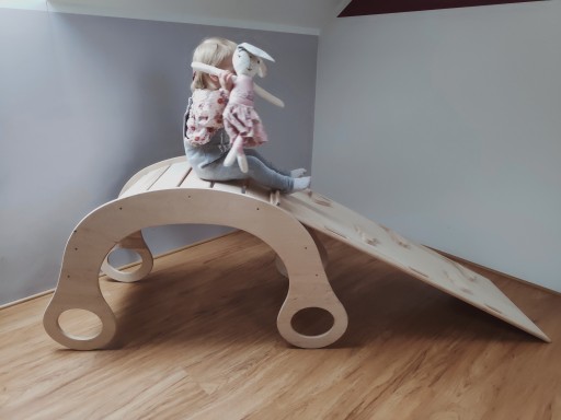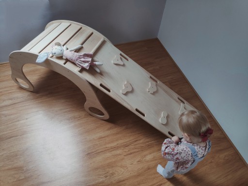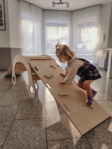Zjeżdżalnia, która po odwróceniu pełni funkcję drabinki wykonana z sklejki brzozowej o grubości 15 mm