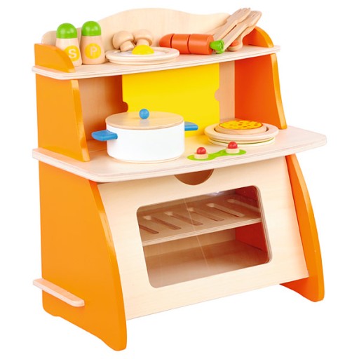 Drewniana kuchenka idealnie odzwierciedla charakter prawdziwej kuchni. Dobrze dobrane szczegóły i żywe kolory sprawiają, że dziecko będzie bawiło się przy niej wiele godzin. Zabawka świetnie sprawdzi się przy zabawie w dom/restaurację. Będzie także idealnym rozwiązaniem dla dzieci lubiących pomagać w pracach domowych.