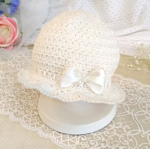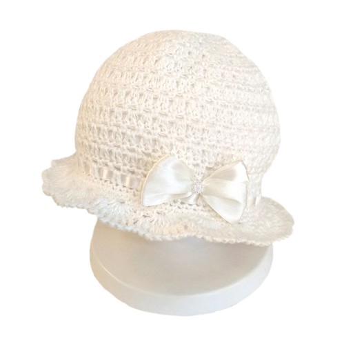 Kapelusz robiony ręcznie na szydełku z ecru przędzy bawełnianej .