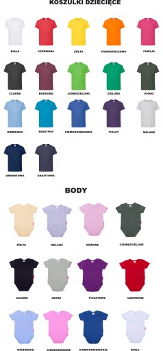 Prosimy po zakupie o informacje dotyczące koloru i rozmiaru zakupionych koszulek: