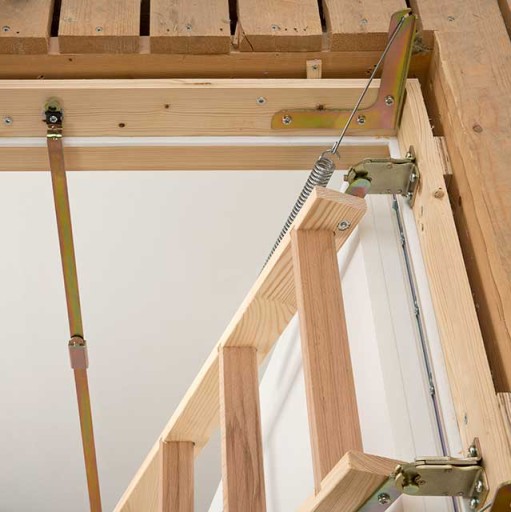 Klapa tych schodów wykonana jest z wysokiej jakości materiału izolacyjnego o grubości 70 mm oraz 3 mm płyt HDF, jest biała z obu stron.