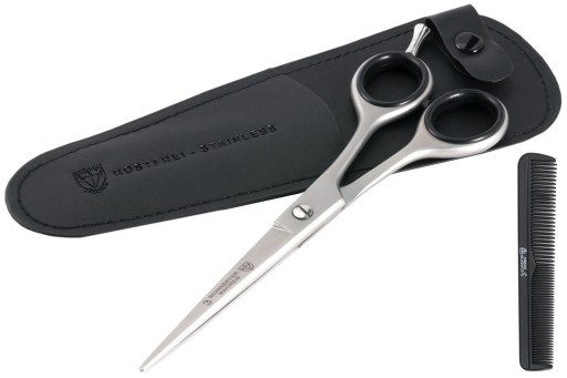 NOŻYCZKI ZAPAKOWANE W FIRMOWE ETUI + GRZEBIEŃ
