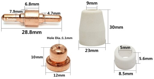Typowe koncowki pasuja do wiekszosci przecinarek plazmowych na rynku 30-60A takich firm jakRILON, RILAND, JASIC, CHIRY, BINZEL, SHERMAN, MAGNUM, STAMOS, ZOSIA oraz do wielu innych.
