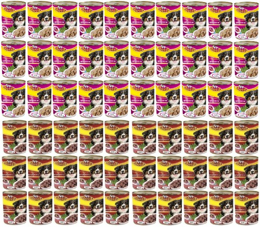 • produkty mięsne (w tym min. 4% drobiu albo wołowiny w zależności od rodzaju puszki)