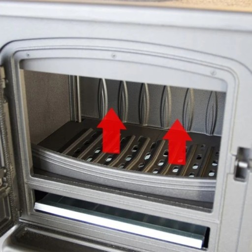 Szuflada/pojemnik na popiół, w których gromadzą się pozostałości po spalonym drewnie oraz ruchomy ruszt, ułatwiający usunięcie popiołu.