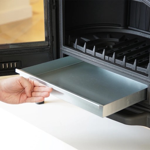 To szuflada/pojemnik na popiół, w których gromadzą się pozostałości po spalonym drewnie. Można ją wyjmować i łatwo czyścić.