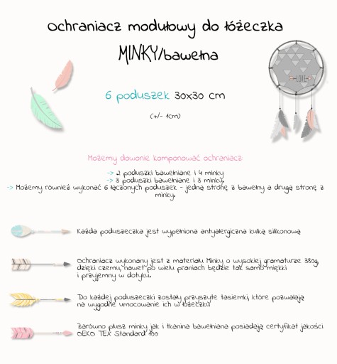 Ochraniacz MINKY __ 6 poduszek __ MODUŁOWY __Wzory