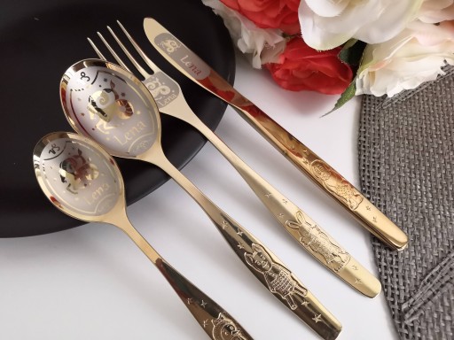 Super pomysl na prezent, szybka realizacja i dostawa! Pamiątka na Chrzest, Pamiątka na Komunię, Prezent dla chłopca, dla dziewczynki, Prezent na ślub, Prezent na urodziny, Prezent dla męża, Prezent dla żony, Prezent dla Taty, prezent dla Mamy, Pamiątka chrztu świętego, Pamiątka bierzmowania, Prezent dla dziecka, Prezent dla wnuka, Prezent dla wnuczki. Sztućce z grawerem, łyżka z grawerem, widełec z grawerem, łyżka dla zupy, nóż. Zestawy 24 szt, zestawy 4 szt. Zestawy sztućców dla dzieci.