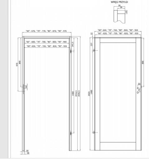 Prosimy po zakupie w wiadomości do sprzedającego określić rozmiar zamawianej ościeżnicy oraz kierunek otwierania.