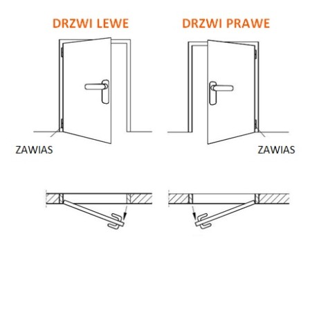 - drzwi lewe - jeśli widzimy zawiasy po lewej stronie otwierając drzwi na siebie