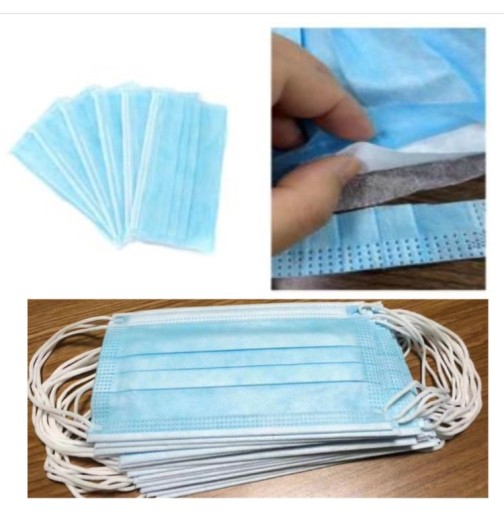 Maska jednorazowa, 3- warstwowa ( dwie warstwy z włókniny bakteriostatycznej, warstwa środkowa gęsta membrana izolująco-filtrująca).