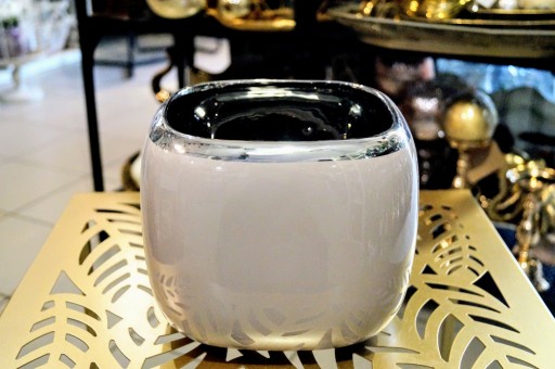 Kolor kawa z mlekiem połączony z chłodnym srebrem tworzy nowoczesną, a jednocześnie ponadczasową kompozycję, dzięki czemu donica dopasuje się do wielu wnętrz i uzupełni różne stylizacje.