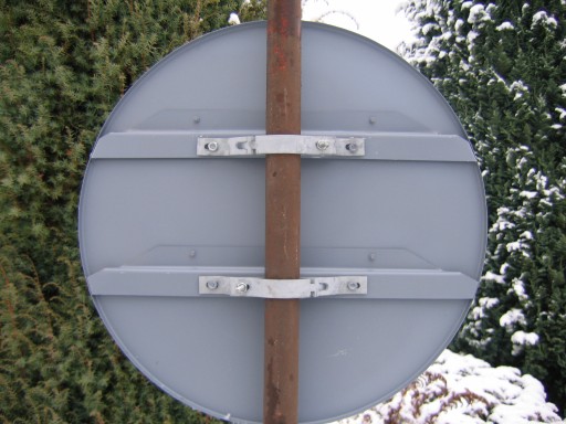 zewnętrzna strona tarczy znaków pomalowana farbą szarą.