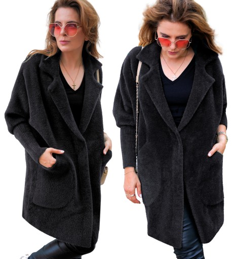 - Płaszcz dostępny jest w jednym rozmiarze OVERSIZE. Obszerny model pasujący na osoby noszące rozmiar S, M, L, XL oraz XXL.
