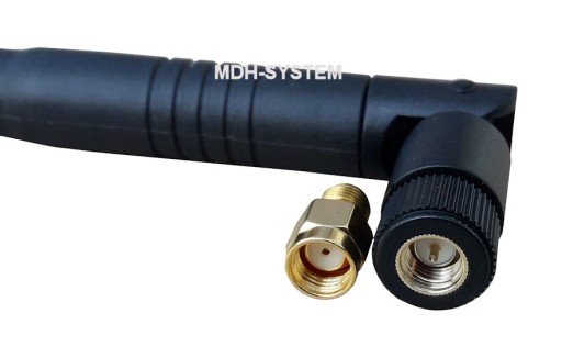- Rodzaj złącza: SMA (z bolcem + przejściówka RP-SMA ( z otworem)