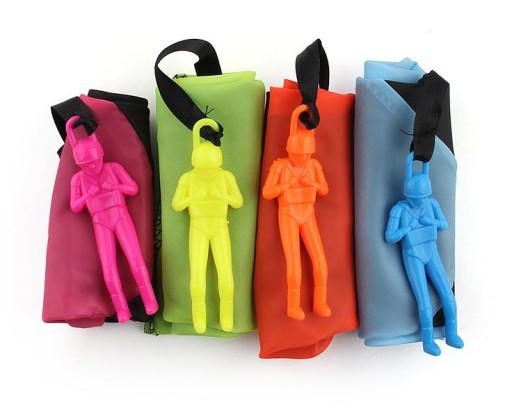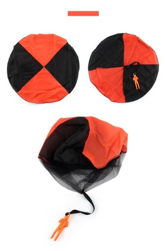 Zestaw zawiera plastikowego ludzika i materiałowy spadochron.