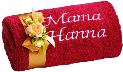 Zapraszamy do zakupu pięknego prezentu, jakim jest oryginalny ręcznik z Twoim indywidualnym haftem dla ukochanej Mamy. Zaskocz mamę miłym i praktycznym prezentem.