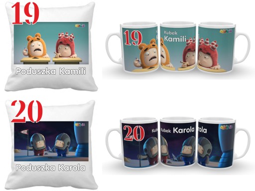 ODDBODS ZESTAW PODUSZKA+KUBEK+IMIĘ DUŻO WZORÓW