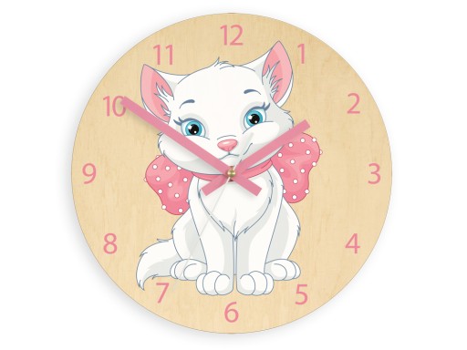 Zegar ścienny KOTEK Z KOKARDĄ do pokoju dziecięcego