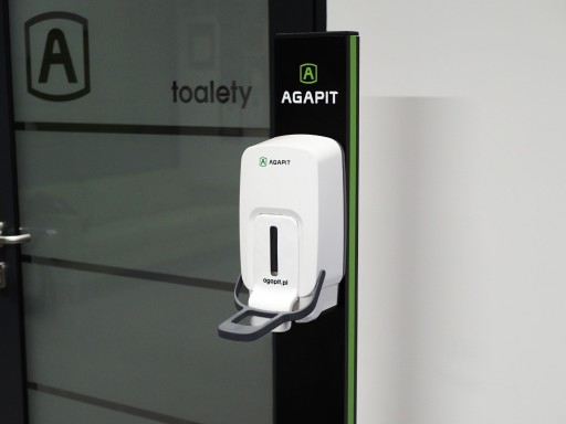 Dozownik łokciowy zamontowany na stojaku: