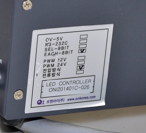 Używany sterownik 4-kanałowy oświetlenia LED systemów inspekcji wizyjnej na liniach przemysłowych. Oznaczenie: ONI-P12R LED Controller, produkt firmy: ONIKOREA. Dokłądny symbol: ONI201401C-026.