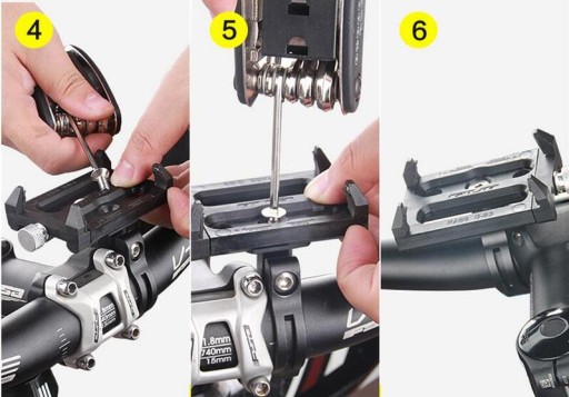 Mocowanie na kierownicy rowerowej lub motocyklowej zapewnia dużą stabilność. Szczęki są skręcane śrubą, dzięki czemu uchwyt bardzo pewnie siedzi i nie obraca się. Posiada regulację położenia telefonu pionowo lub poziomo, a także umożliwia dopasowanie kąta.
