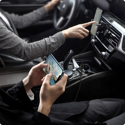 - Możliwość Podłączenia Dwóch Telefonów Jednocześnie: Urządzenie umożliwia jednoczesne połączenie bezprzewodowe dwóch telefonów, co pozwala na łatwe przełączanie między urządzeniami, na przykład w przypadku odbierania połączeń przychodzących na obu telefonach.