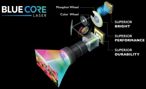 Projektory laserowe BenQ BlueCore gwarantują 20 000 godzin najwyższej jakości obrazu i wydajności. Źródło światła laserowego przeciwstawia się zanikowi koloru w czasie, dzięki czemu projektory laserowe BenQ są idealne do projekcji z wieloma projektorami bez obawy o sąsiednie projektory generujące różne poziomy jasności po okresie działania.