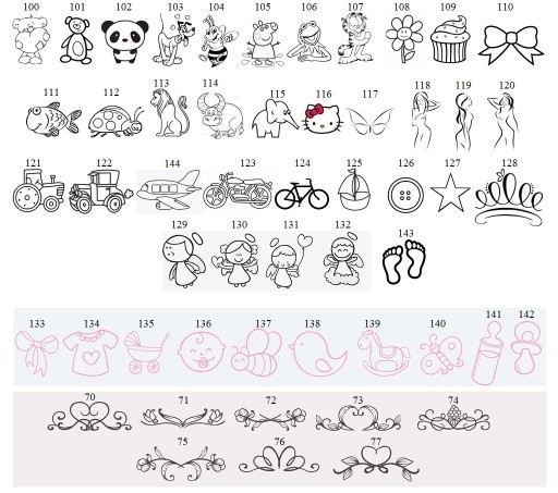 Poniżej prezentujemy przykładowe realizacje haftów i dostępne dekoracje: