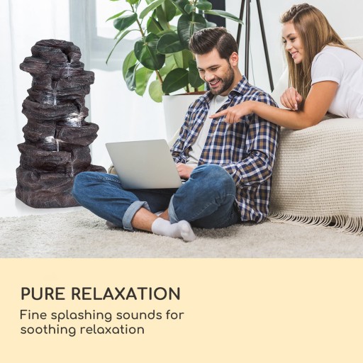 CZYSTY RELAKS: Fontanna zapewnia również przyjemnie świeży, zdrowy klimat. W zamkniętym obiegu wody zimna woda przepływa z jednego poziomu na drugi w cyklu ciągłym. Oznacza to, że nie jest konieczne podłączenie do zewnętrznego źródła wody.