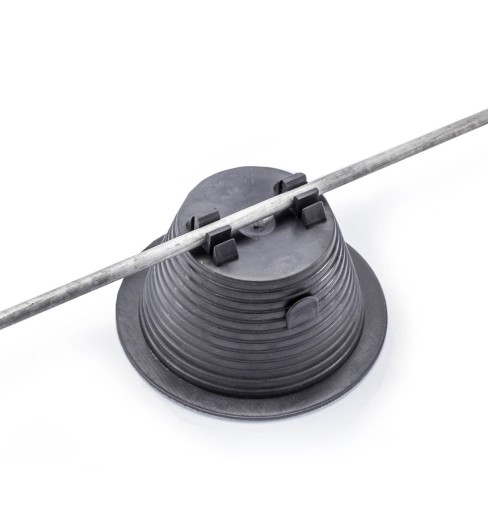 Uniwersalny uchwyt do montażu instalacji odgromowej na dachu. Połączenie elastycznej i odpornej na działanie warunków atmosferycznych polietylenowej obudowy z betonowym obciążeniem, które zapewnia stabilność trwałość, a także łatwość montażu.