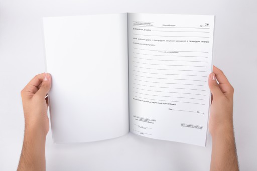 - Ilość kartek: 200 kartek (100 kompletów oryginał + kopia), strony numerowane