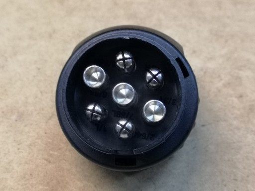 Przejście ze standardowego gniazda 7 bolcowego w samochodzie na wtyczkę 13 pinową w przyczepce.