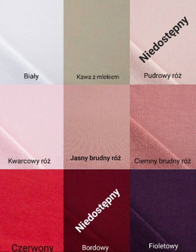 Wzornik dostępnych kolorów przedstawiony jest na ostatnich zdjeciach