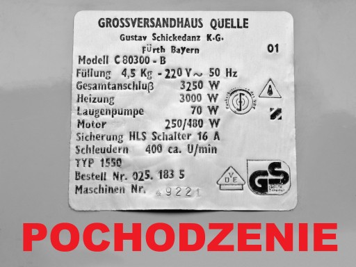 Sprawny , z demontażu pralki Privileg 4 Modell C80300-B .