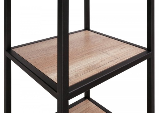 Słupek Modus, wykonany jest w nowoczesnym stylu industrialnym. Kolor płyt dekor dębowy country, w połączeniu z matowymi czarnymi metalowymi elementami, nadaje niepowtarzalny LOFTowy design, który jest teraz bardzo poszukiwany i ceniony w nowoczesnych aranżacjach łazienkowych. Słupek posiada dwie półki,szufladę z cichym domykiem orazd drzwiczki z katórymi kryje się półka.