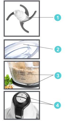 Dzięki bardzo wysokiej prędkości obrotowej i ekstremalnie ostrym ostrzom urządzenie dosłownie w kilka sekund sieka produkty na drobne kawałeczki, a jak potrzeba to na papkę, wszystko zależy od tego jak długo przytrzymasz przycisk.